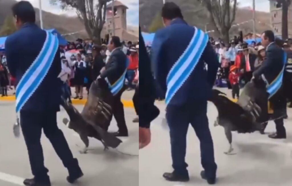 Alcalde y regidor de Apurímac arrastran a un cóndor andino vivo durante desfile